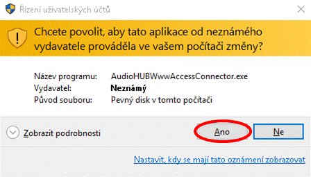 V případě zapnutého Řízení uživatelských účtů (UAC) u operačního systému Windows 10 je třeba povolit aplikaci provádění změn v počítači kliknutím na Ano (Obrázek 4).