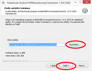 V následujících třech oknech klikněte na tlačítko Další, případně si zvolte jinou než výchozí cílovou složku, kam bude program nainstalován (Obrázek 8).