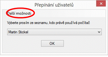 Zobrazí se Vám okno Přepínání uživatelů (Obrázek 17), kde se po kliknutí na Další možnosti objeví následující nabídka (Obrázek 18):